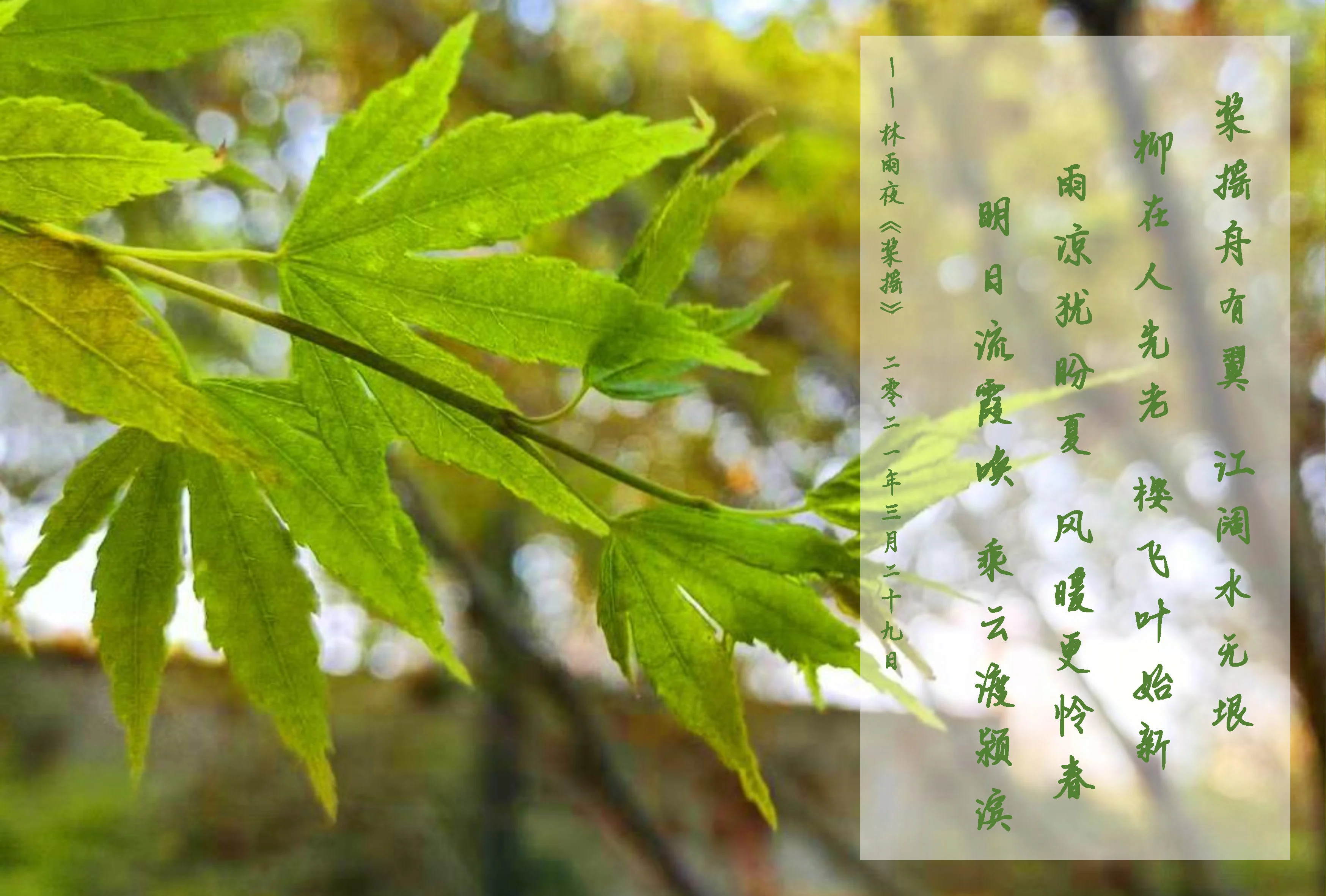 尽日心潮压雨声。濛濛何似柳分明。灞桥独上忆浮生。