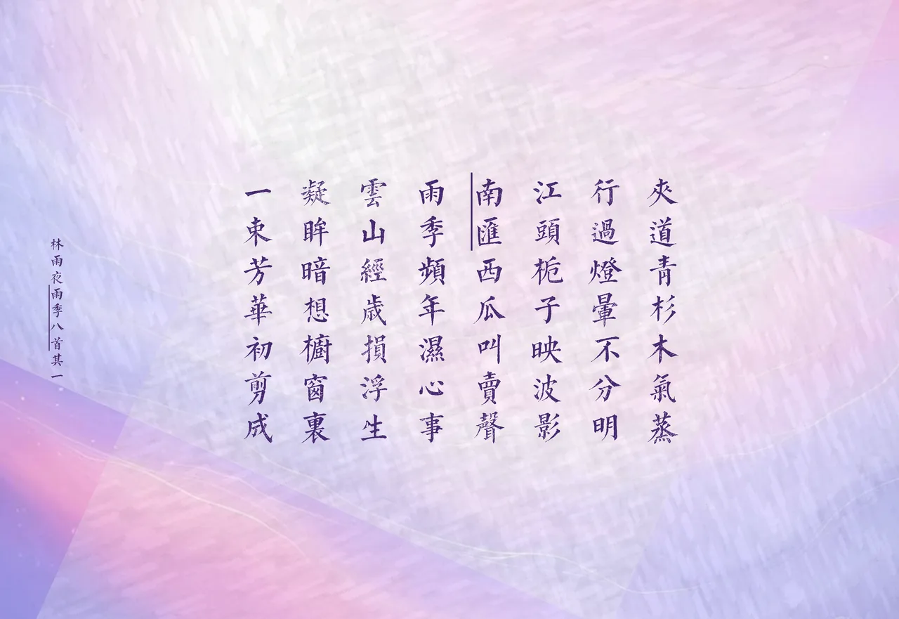 酸眼烟油樟树,惊心血浸杨梅。流阴更早夏前肥,草色渐幽渐锐。