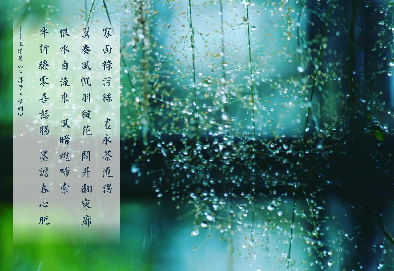 云封翠雪,烟锁碧炊,雨黛澹寒天气。小叶藏娇,脉脉向人含泪。语声低、梦续前朝事。算絮影、文章翰墨,濛濛一一垂地。