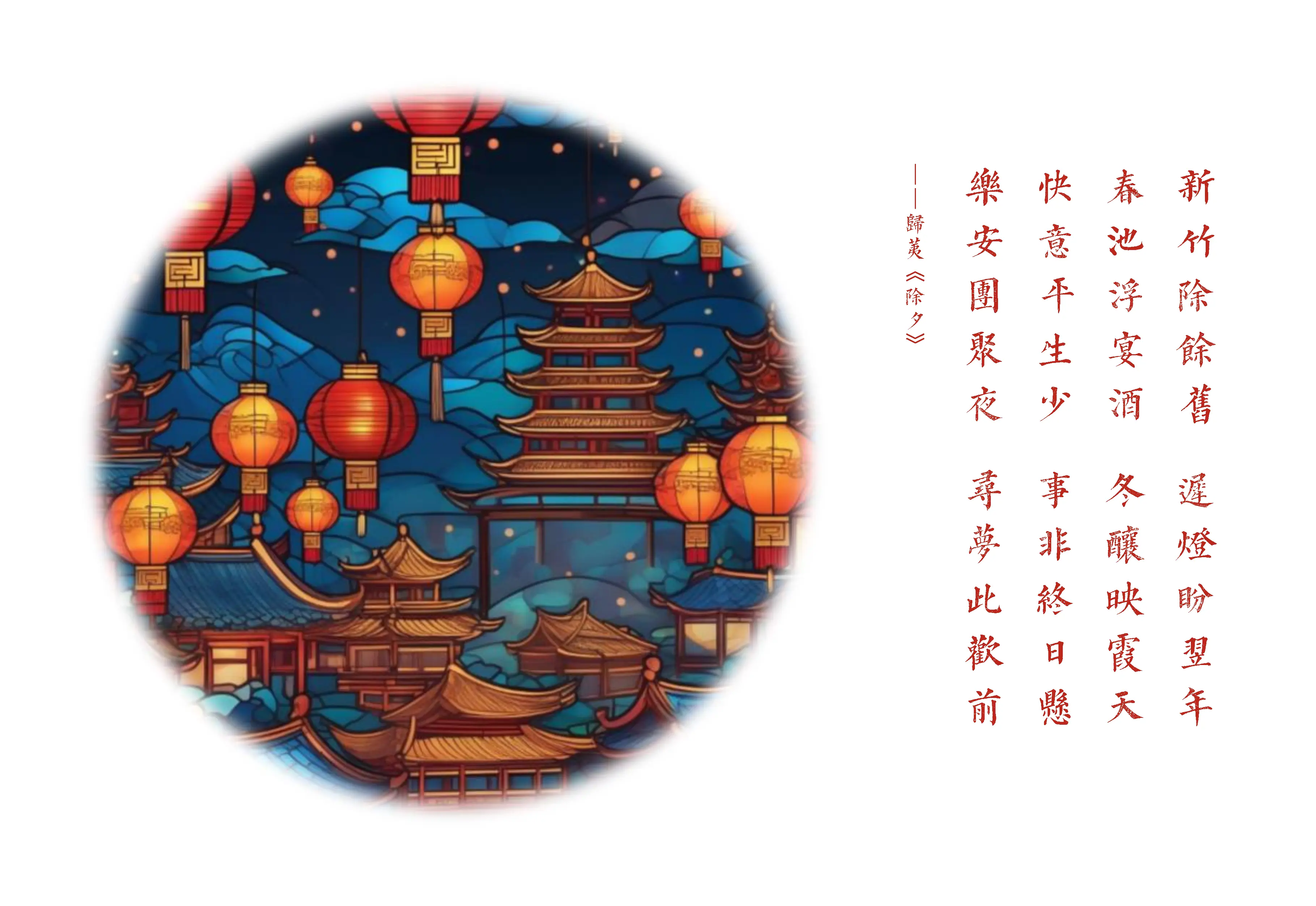 故事小窗边。聚散成缘。一杯一笑一轰然。不慎更深人来报:今日新年。