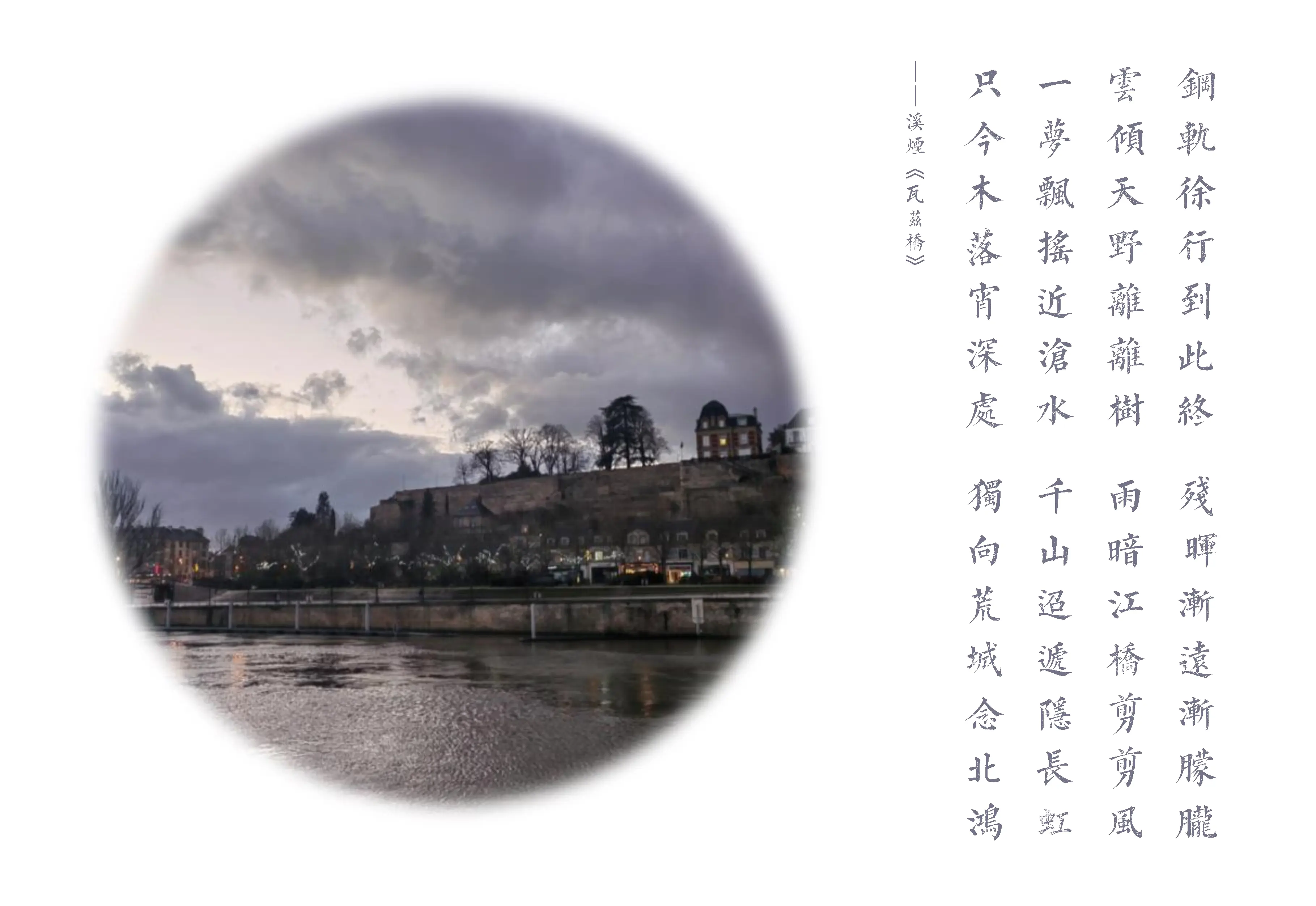蓝虎无声言「国际」,白鸾有恨卧桥头。卧看桥下水悠悠。