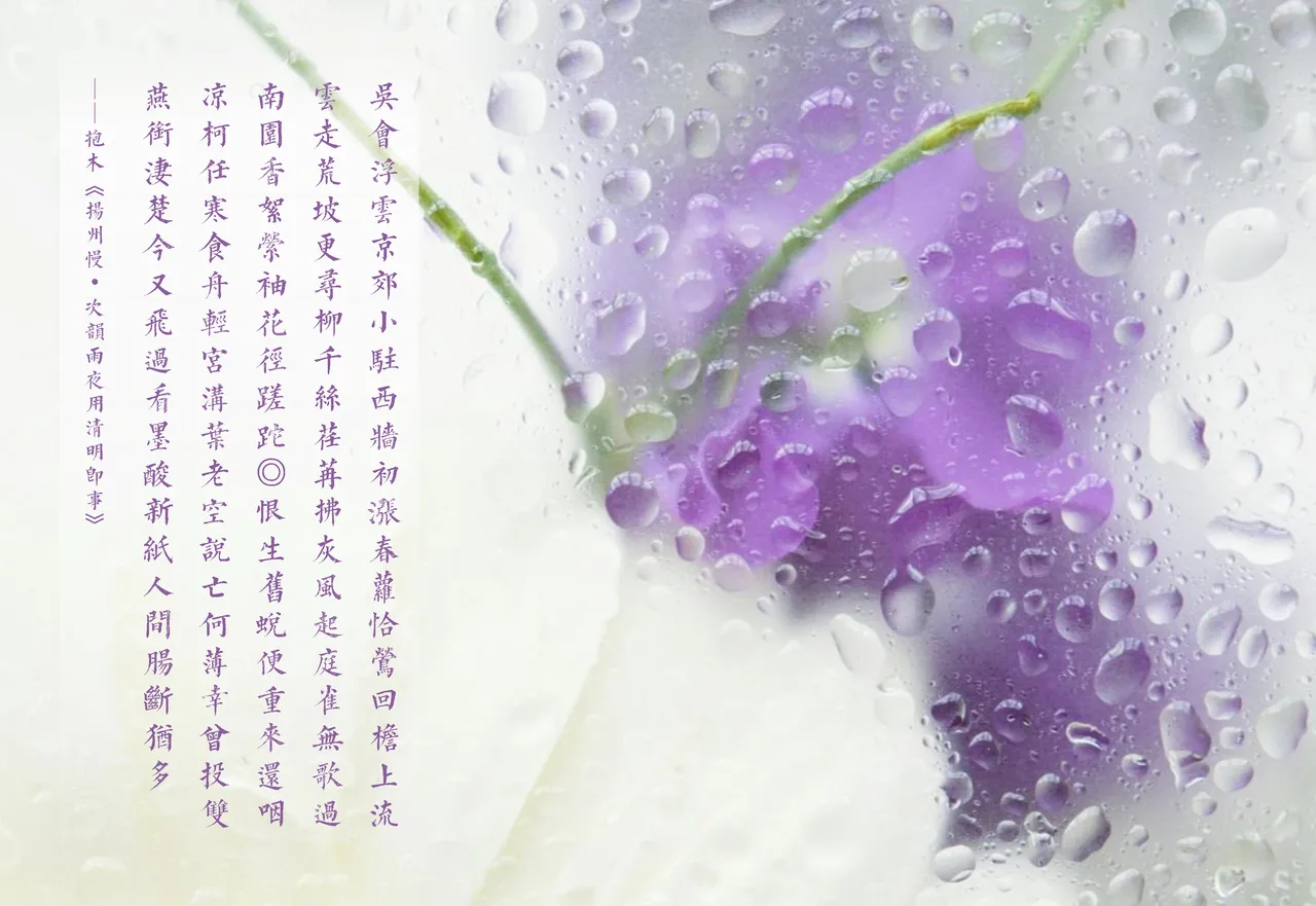 梦作空花舞。听侵晓、碧窗飘洒无数。江南为客,今遭又是,淡朝幽暮。多情自绕楼台,似要惹、诗魂一缕。恁费得、格调清寒,人间莫织愁句。